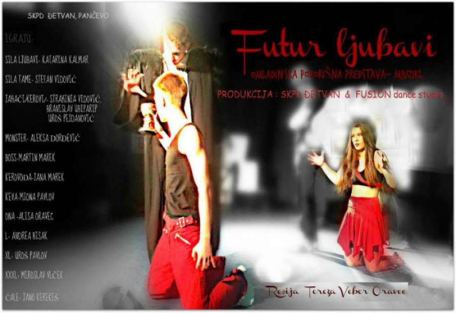 Omladinska pozorišna predstava – mjuzikl “Futur ljubavi” biće odigrana u sredu, 1. Juna u 19 sati, na sceni Kulturnog centra Pančevo u okviru ovogodišnjeg Festivala “BUDI”.